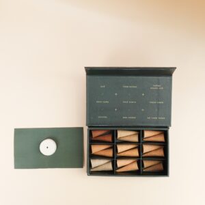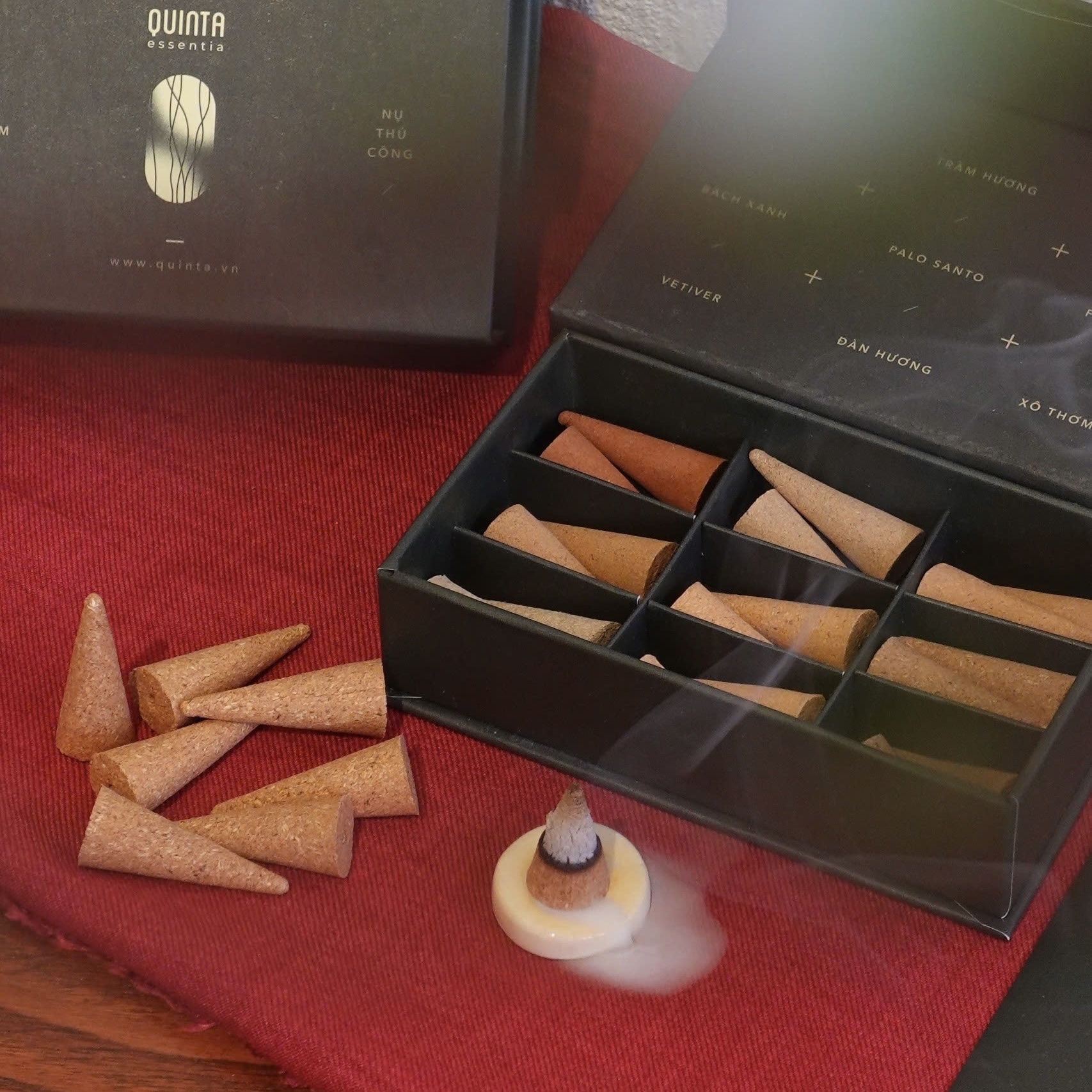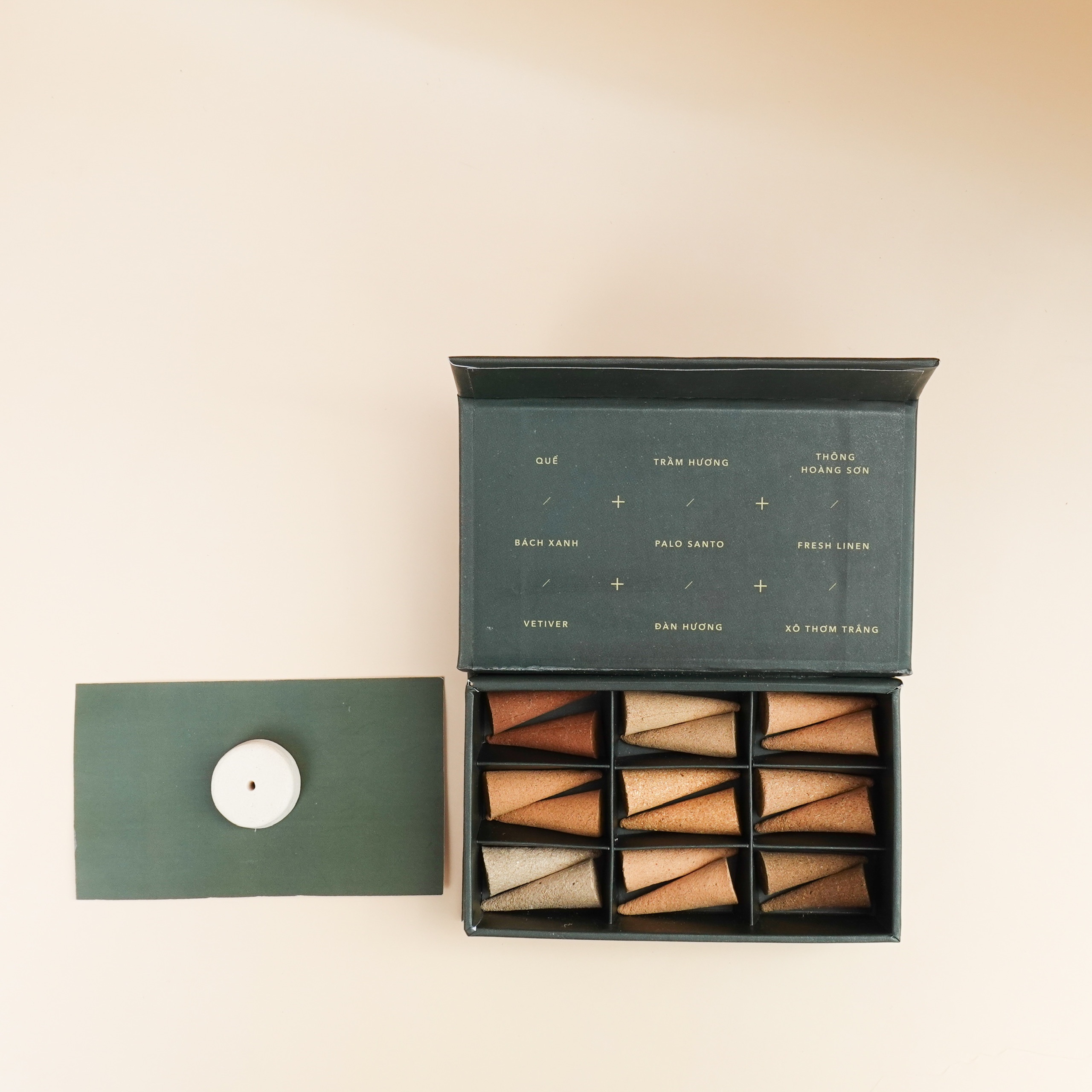 Bộ trải nghiệm 9 loại nhang nụ thủ công được làm hoàn toàn từ gỗ, nhựa cây và thảo mộc. Vẫn là quy trình tỉ mẩn từng chút một mà chúng mình trung thành theo đuổi trong hơn 2 năm nay để sản xuất ra loại nhiều loại nụ nhang với nhiều mùi hương, đều rất dễ chịu và thư giãn cho tâm trí!