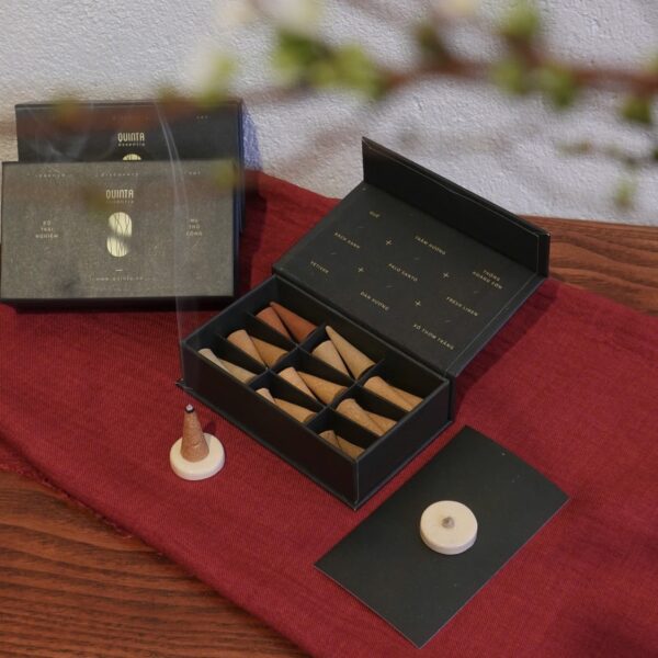 Từng loại Nụ được xếp gọn vào ô riêng có đánh dấu tên tương ứng trên nắp hộp để dễ phân biệt. Ngoài ra khi mua bộ trải nghiệm cả nhà cũng sẽ được tặng viên gốm mộc nhỏ xinh dùng để kê nụ. Cách dùng cũng đơn giản vì chỉ cần châm nụ với lửa nhỏ, sau đó thổi tắt, đặt nụ lên viên gốm và tận hưởng 25 phút an lành. Phải nói đây là sản phẩm chúng mình rất tâm đắc khi vô cùng tiện để mang theo trong những chuyến đi. Hơn nữa là đủ chỉn chu, xinh đẹp để làm quà tặng.